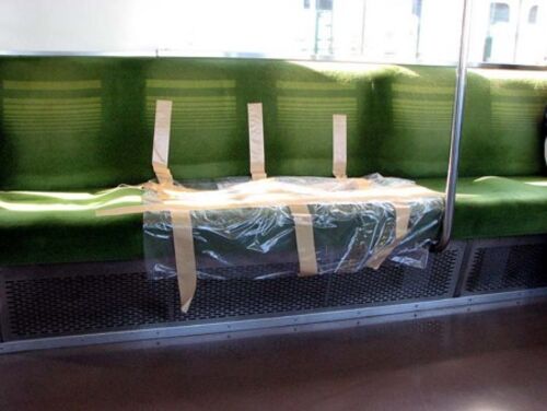 電車内でなにやら人が寄り付いていない場所が・・・ ベンチシート上に小間物屋を開店した残滓をビニルで覆っているのであろう。 全く公徳心のカケラもない輩の仕業だろう。 このようなものを開陳するのは不本意ではあるが、これから年末を控え、同様の事象は…