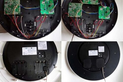 シチズンの電波掛時計である。 電源は、単三電池が6本。 本体には、3Vが供給されている。 3Vは、3本並列接続+3本並列接続で生成されている。 電波時計ユニットの消費電力を賄うための並列接続であろうが、これは得策ではない。 電池を常時並列接続して使用…