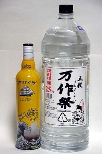 スーパーバリュー越谷店 カティサーク浮世絵700/40:845円(30円/アルコール) 万作祭4L/25:1,599円(16.0円/アルコール)