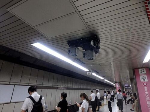 地下鉄の天井から、最近何やら奇異なモノがぶら下がっている。 ・都営新宿線新宿駅 ・東京メトロ九段下駅 形状から、広角度レンズ装着カメラのような気がする。