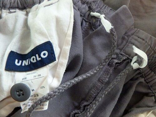 暑くなってくると、短パンの出番。ユニクロの短パン(869-0801)だが、ゴム素材が緩くなってきていて、ヒモで締めないとずり落ちるようになった。元は太めのゴムヒモ一体式なので、交換は考慮されていない。最下段の胴回りに通るゴム紐を通した。前部中央付近…