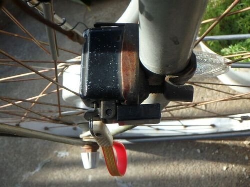 常用の27インチチャリには前輪側に箱錠を取り付けている。最近、施錠しても鍵が抜けなくなる不具合が発生。 簡単便利な後輪側リングロックに交換することとした。 手持ち品を取付。 箱錠は、取外し。