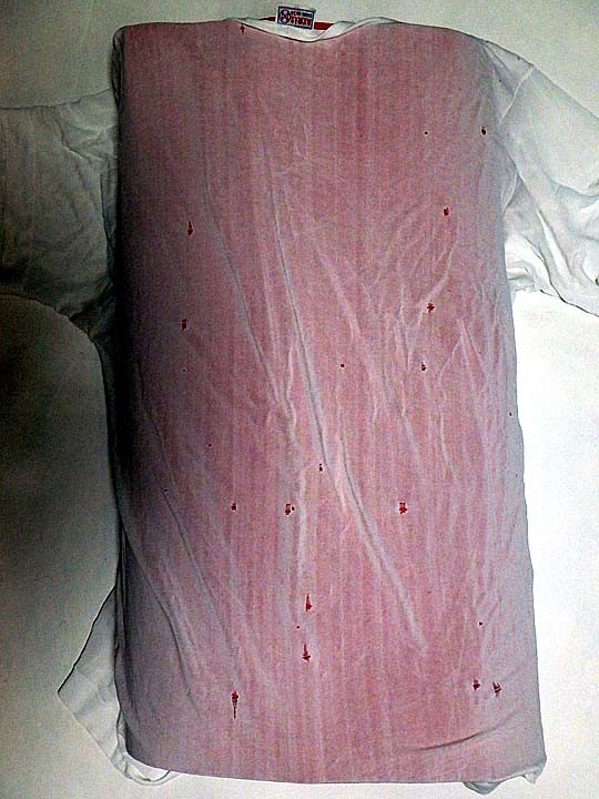 2018-10-30 絹下着シャツの最後 衣料 1998年にクラブメッド・ビンタンに行った帰途、シンガポールに寄った。そのチャイナタウンで購入した絹製の下着シャツだが、いつの間にか背中側にポツポツと小穴が開いてきた。20年間もよく持ったもんだ・・・ということで、この写真をもって墓標とする。
