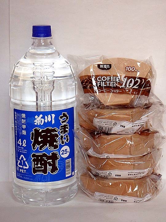 2019-09-13 焼酎とコーヒーフィルタ 酒 業務スーパー越谷店菊川焼酎4L/25:1,588円(15.9円/アルコール) TSコーヒーフィルタ2-4杯用:102円×5実は、ここの前にダイソーでコーヒーフィルタを探していた・・・そこでは2-4杯用は売り切れ(もちろん108円品)で、結果的には良かった。フィルタを仕舞っておく置く場所を忘れないようにしなければ・・・